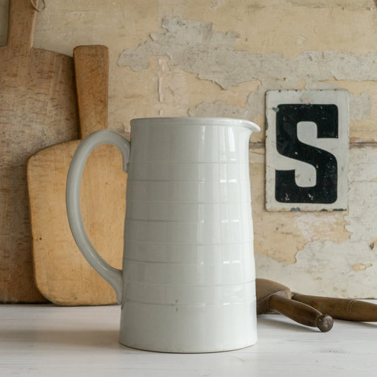 Tall Antique White Ironstone Banded Dairy Jug