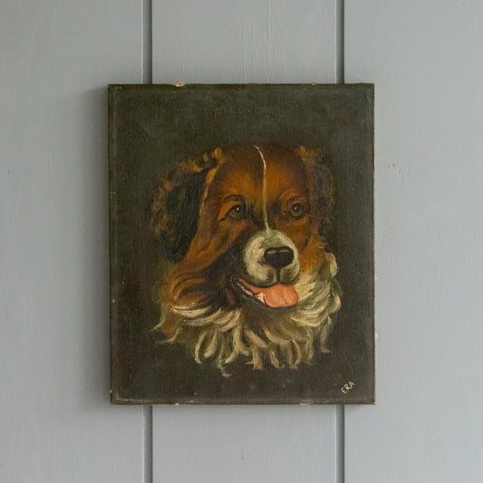Vintage Oil Painting of a St Bernard Dog