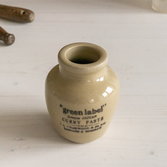 Vintage Stoneware Sharwood Green Label Curry Paste Pot #2