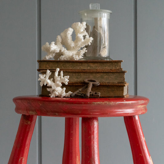 Vintage Red Painted Wooden Milking Stool