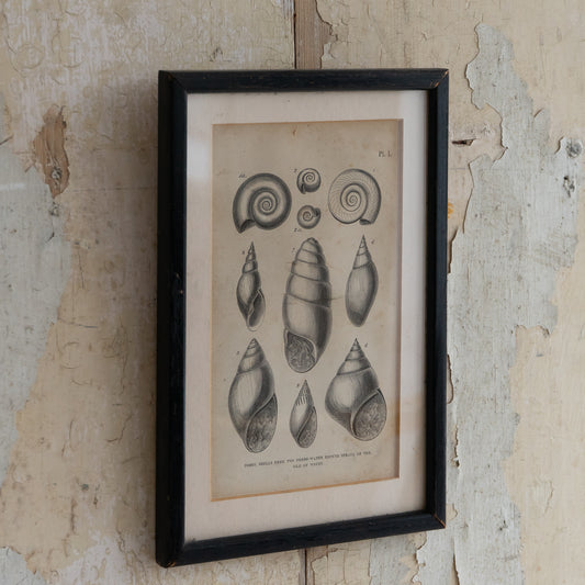 Framed Black and White Book Plate of Shells