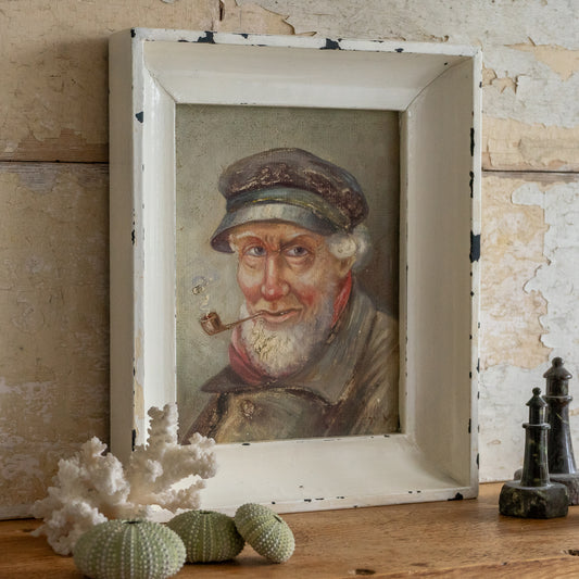 Framed Oil on Board Painting of a Fisherman