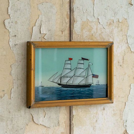 Sold outFramed Painting on Glass of a Ship