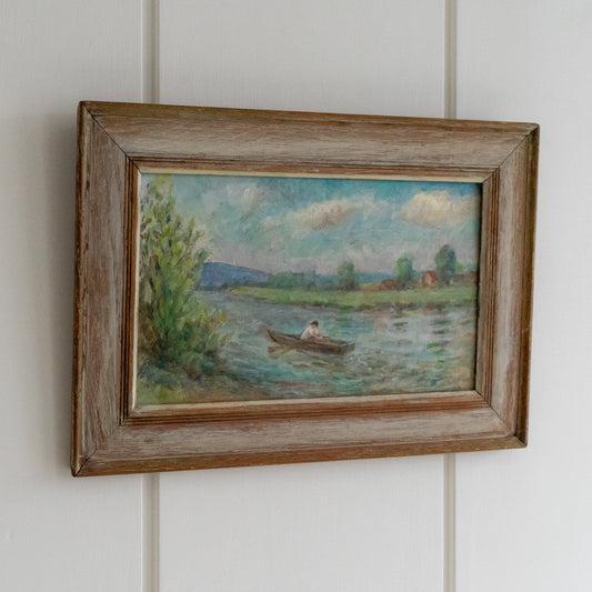 Framed Painting of a Rower on the River