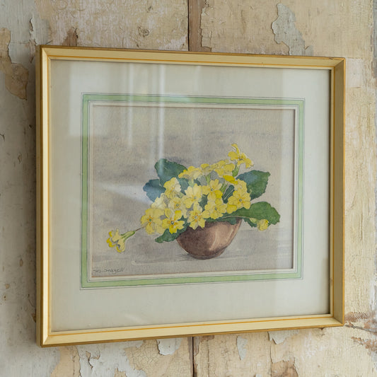 Framed Watercolour Painting of Primroses