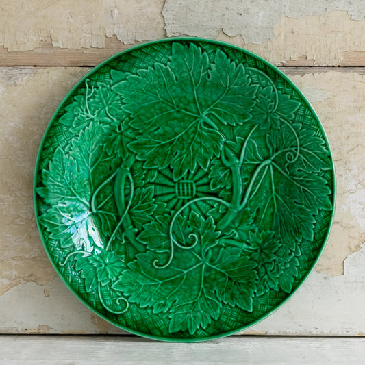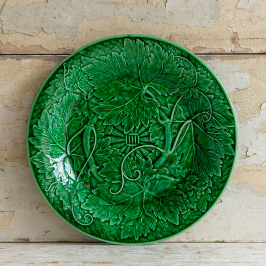 Wedgwood Vine and Basketweave Green Majolica Leaf Plate