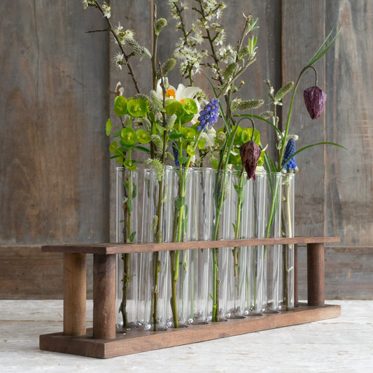 Vintage Wooden Test Tube Rack with Glass Test Tubes