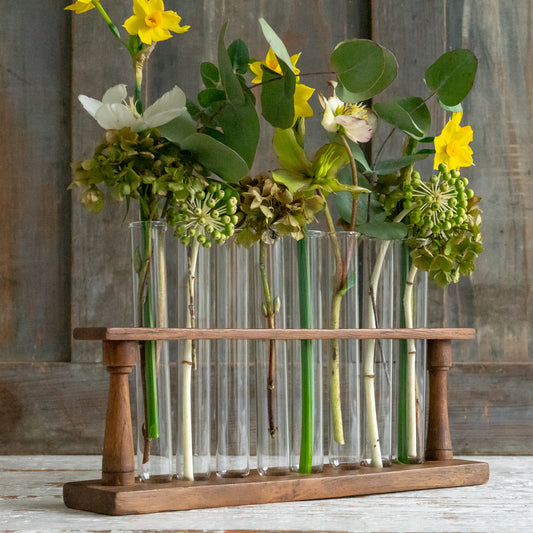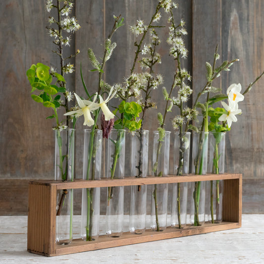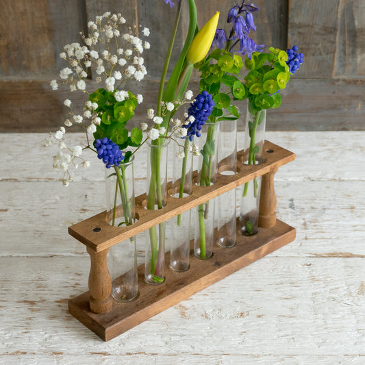 Vintage Wooden Test Tube Rack with 8 Large Glass Test Tubes