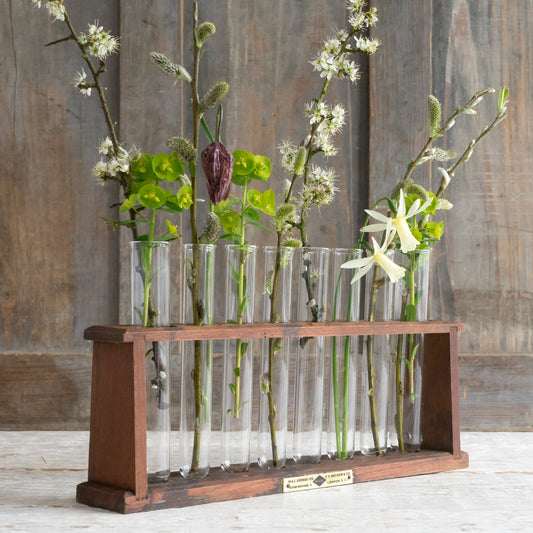 Vintage Wooden Test Tubes Rack with 8 Glass Test Tubes