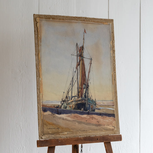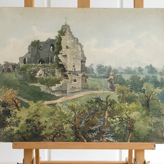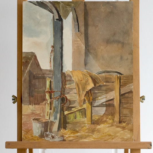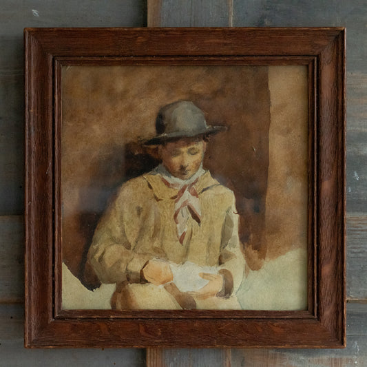 Watercolour Painting of a Farmer, His Dog and Sheep