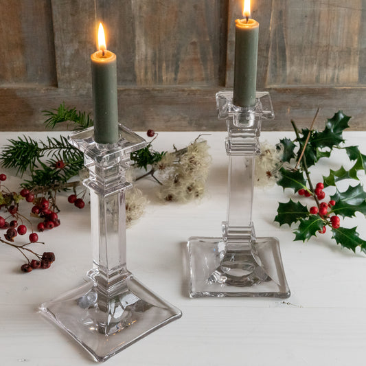 Pair of Tall Glass Candlesticks