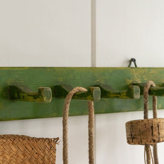 Rustic Green Painted wooden Coat Hooks