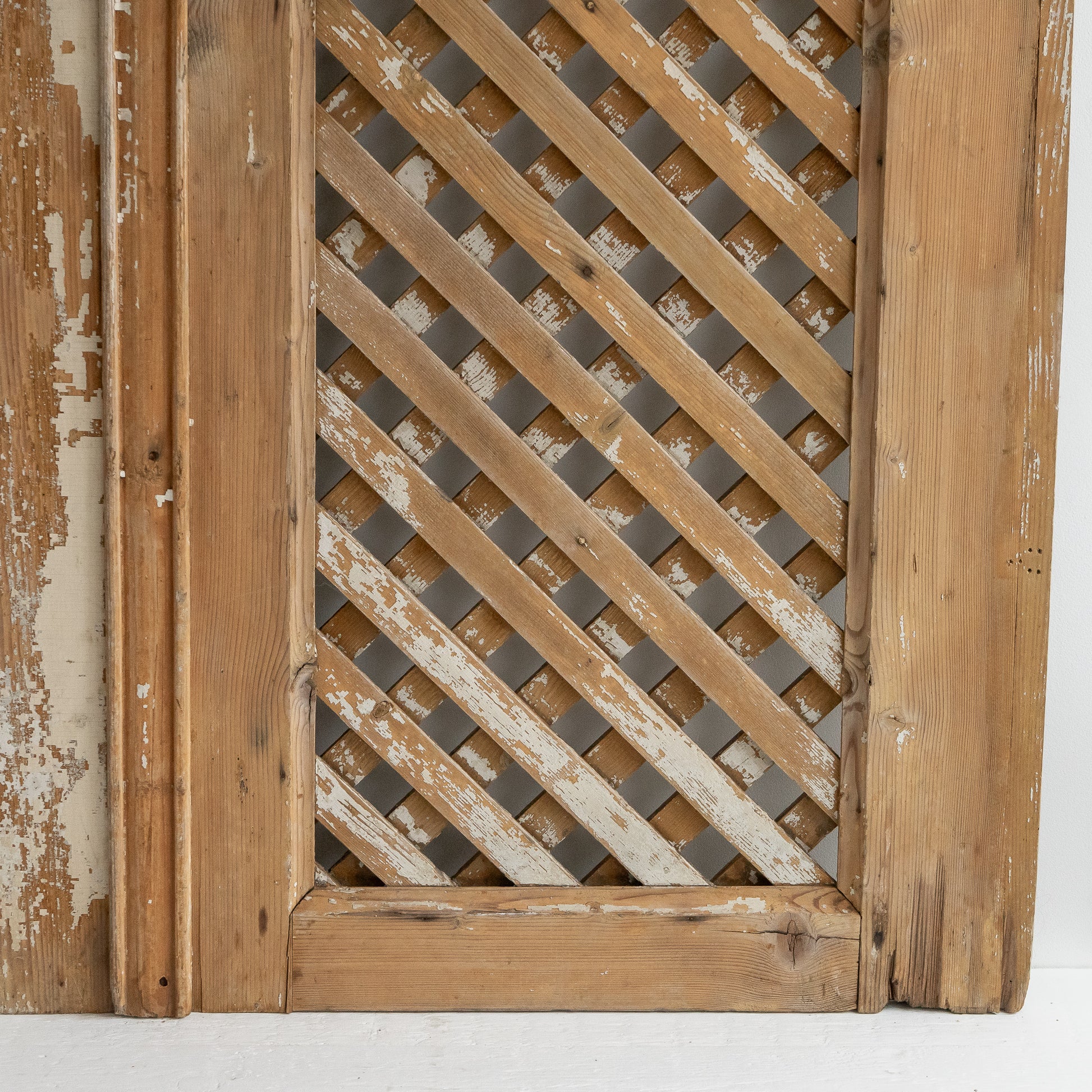 Amazing pair of old rustic pine cupboard doors with patches of their original white paint to the front and a very pale grey to the back.