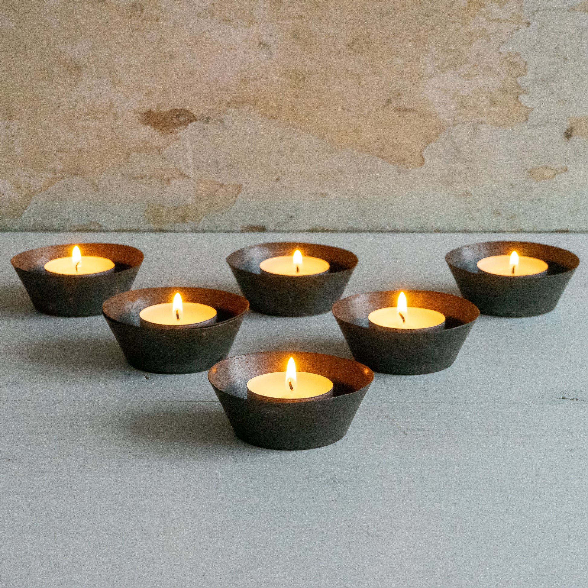 I love these old French patisserie tins with their tarnished patina that are the perfect size for a tealight.