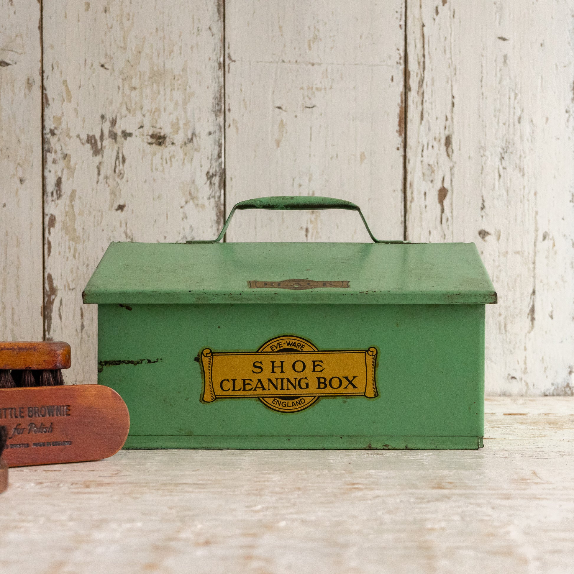 Fabulous vintage tin shoe cleaning box in great condition. There are some marks and stains but only what you would expect from such an item.