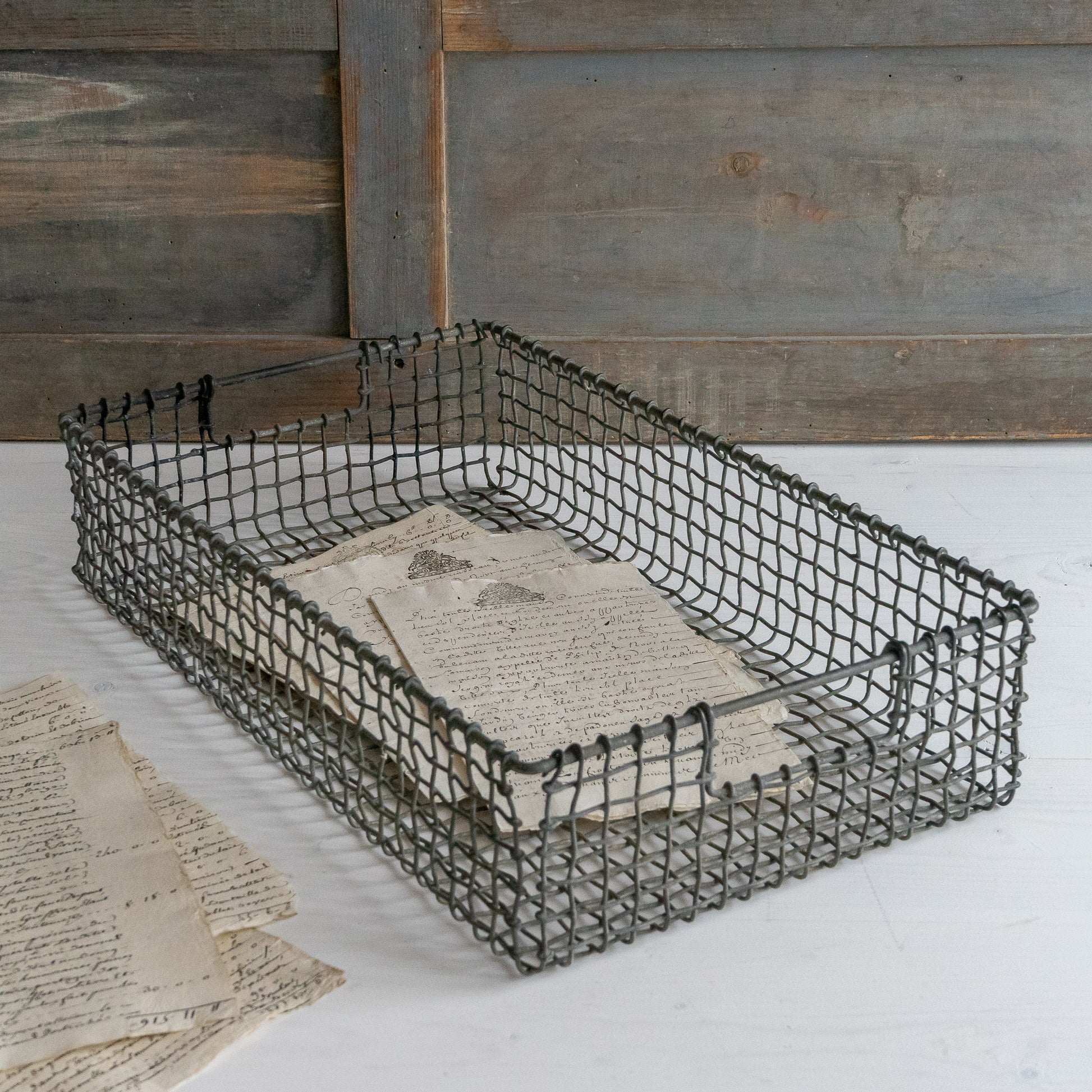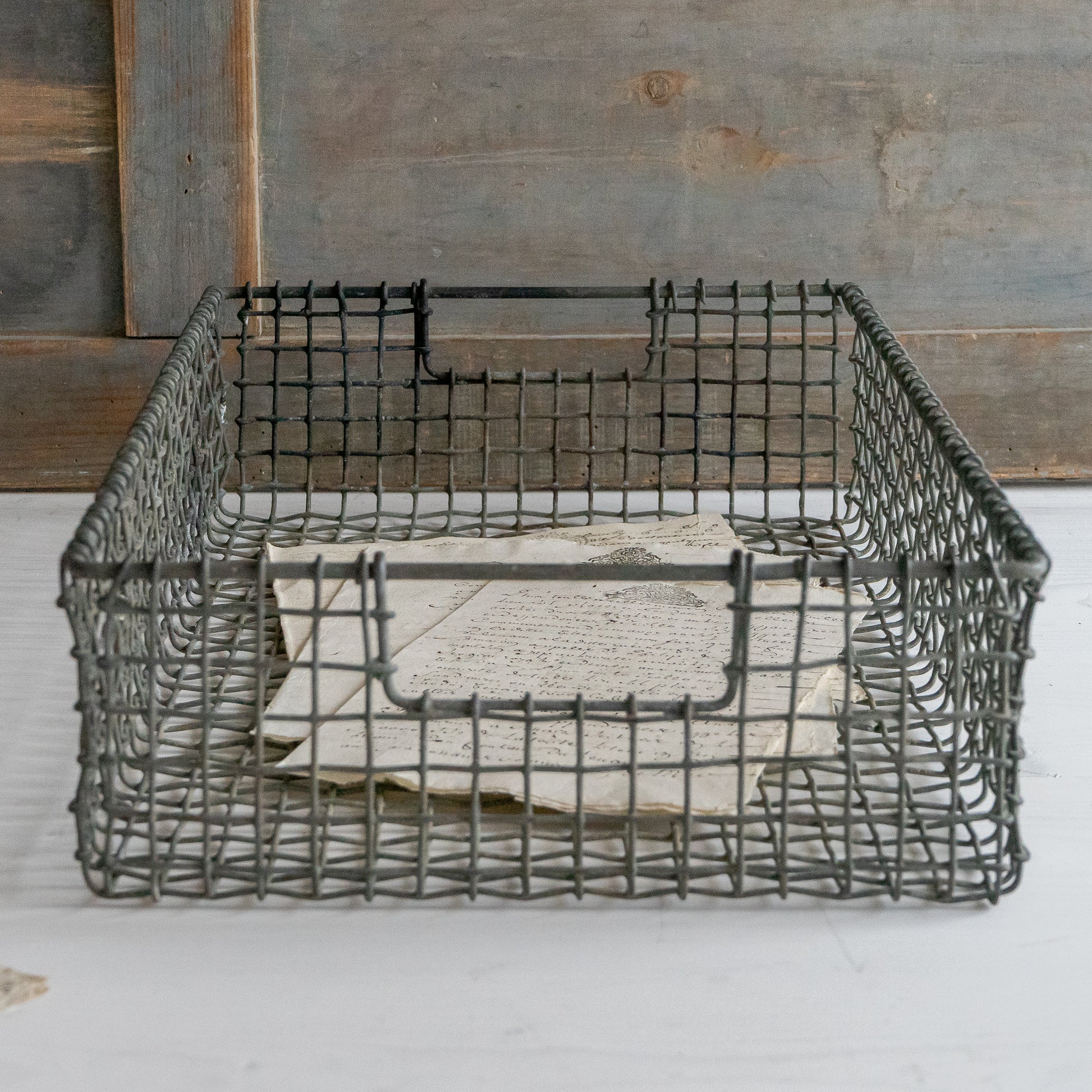 Rustic wire work basket tray with a lovely faded patina.